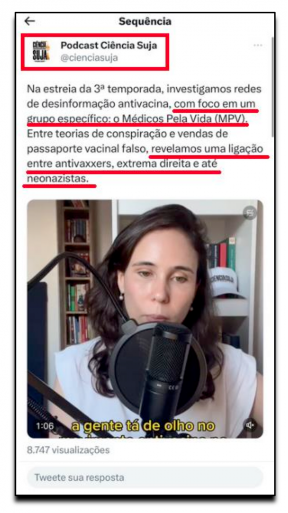 - Associar uma entidade formada por médicos que atuaram na linha de frente da pandemia com “extrema direita e neonazistas” é uma tática clara de demonização. Eles misturam tudo no mesmo pacote para desqualificar sem precisar debater os argumentos científicos.