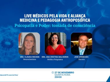 Live especial MPV e AM&PA – Tema Psicopatia e Poder, conceitos, diagnósticos e diferentes visões. Quarta-feira (27) às 20h30/parte 1, com a Neurocientista Dra. Claudia Riecken